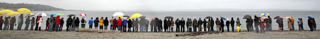 The ocean connects us; therefore, we bless the water and pay tribute to both the people lost and the survivors, with sacred music, silent prayers, and the formation of a "human chain" facing Japan. We send love and hope to the people of Japan.